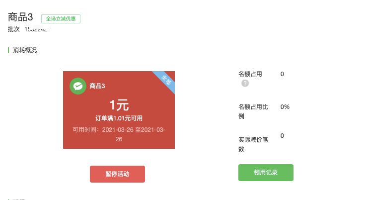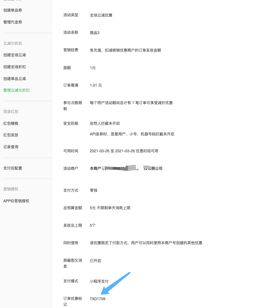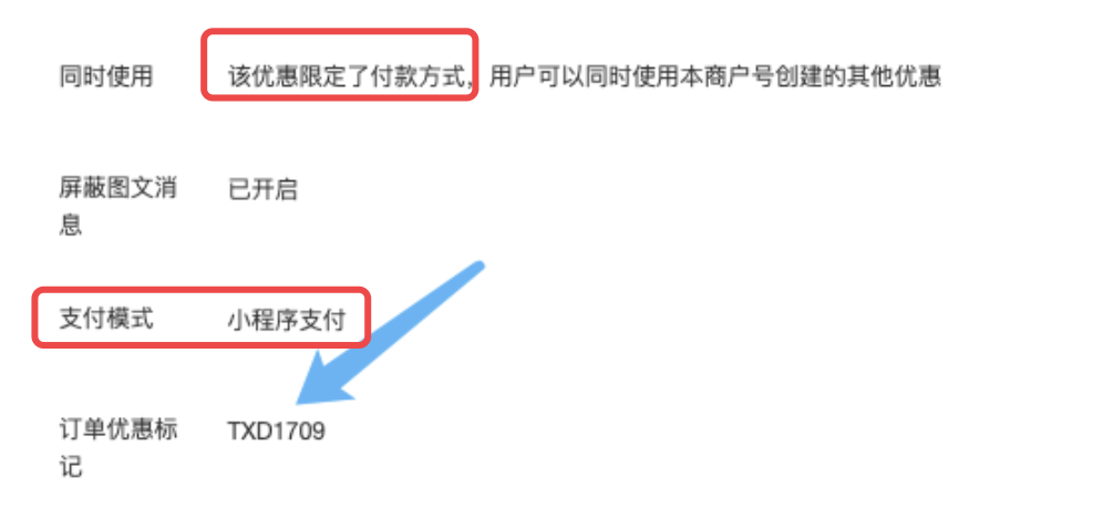 1、在微信商户后台 配置了 立减与折扣,指定了订单优惠标记,且活动已激活