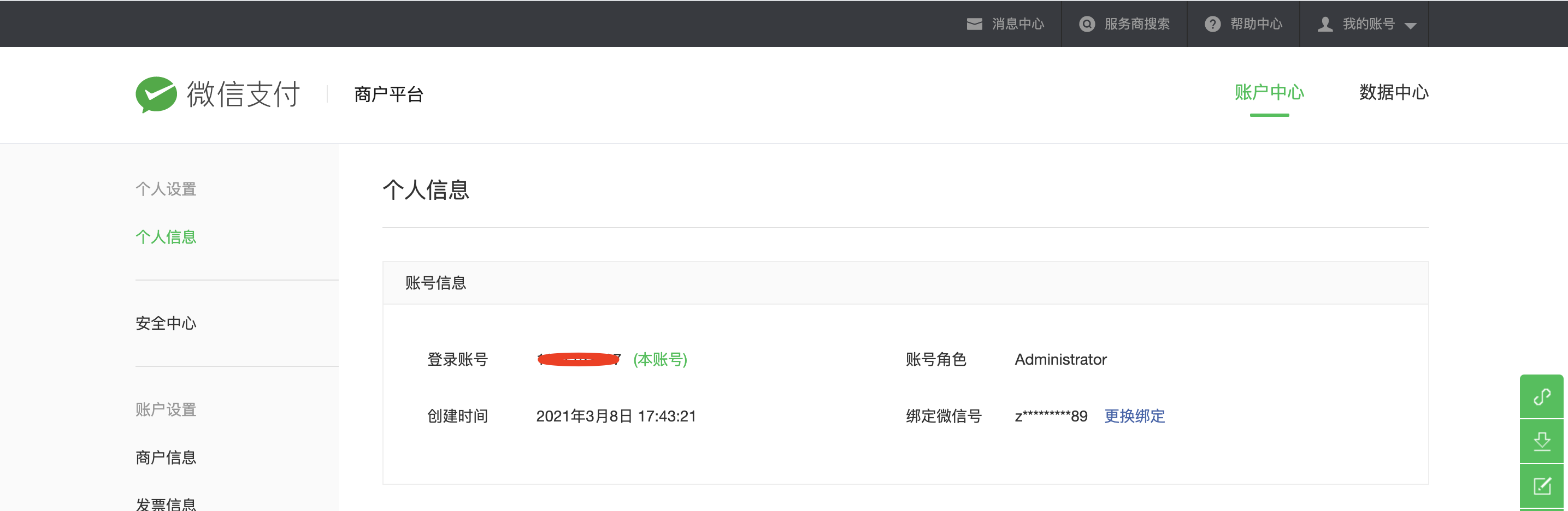 经95017客服咨询,说从小商城申请的微信支付,属于特约商户,无法进行自主开发,需要重新申请商户号,从首页那边申请商户。