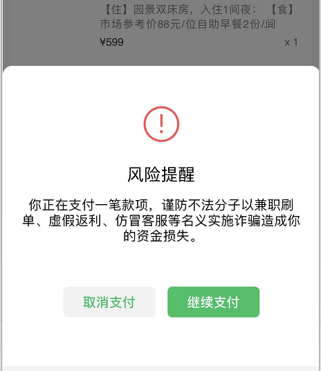 该提示一般是由于用户的使用特征命中了部分安全逻辑才会出现,是自动触发的一个安全风险提醒,并不影响支付,商户号保持正常交易一段时间后会减少被风控,若有更多疑问可拨打95017咨询客服