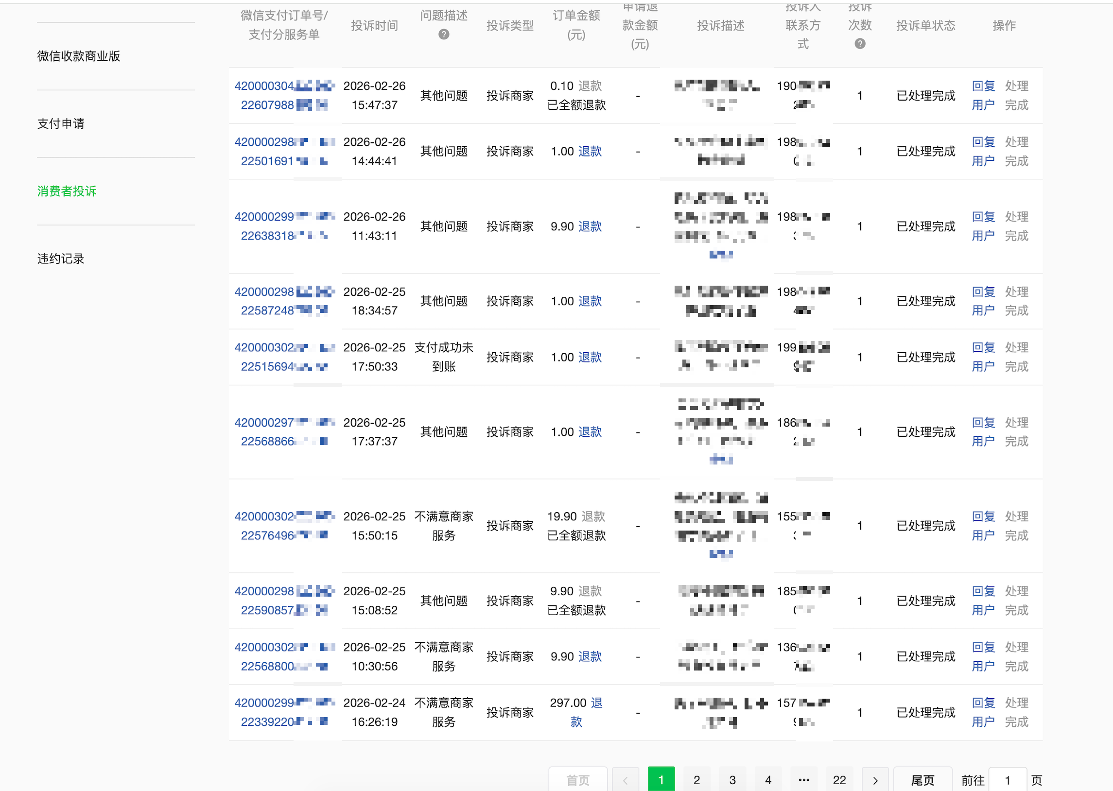 {2}商户处理投诉的过程:如有聊天记录可截图提供完整的聊天过程,如没有聊天记录可提供处理该笔投诉的情况说明
