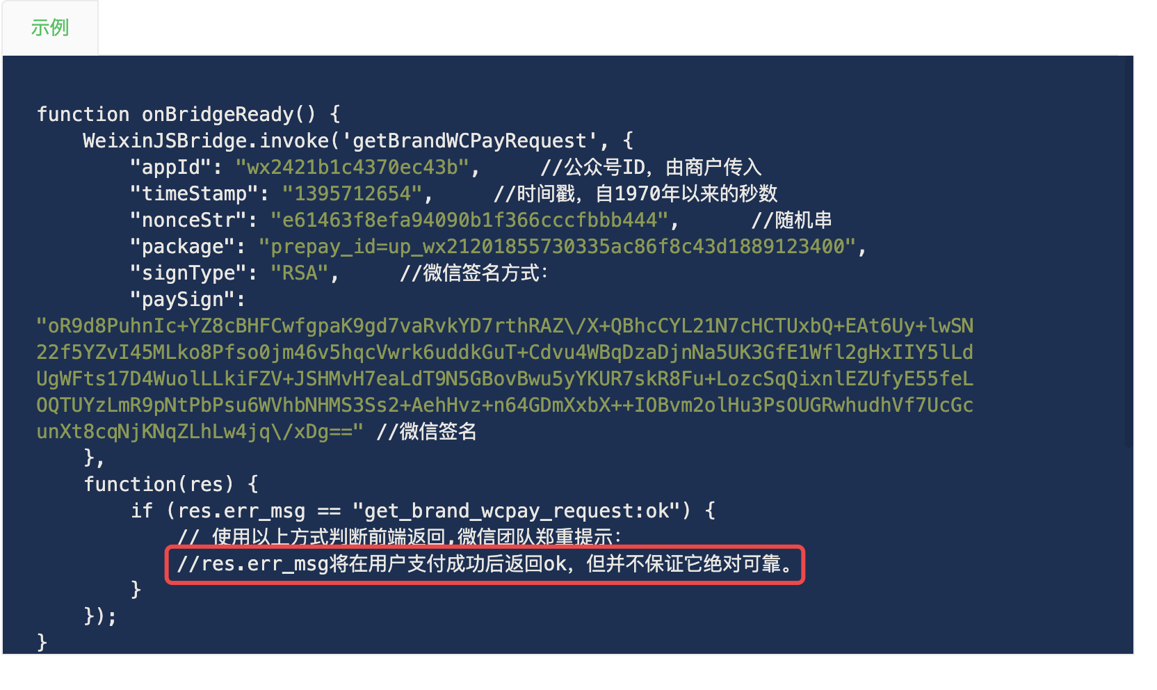 判断交易成功不能仅仅依靠「get_brand_wcpay_request」,官方都说明了他不一定可靠,支付又不是没有异步支付结果通知,多认真看看文档,开发文档已经给了时序图了,最后查单步骤,是在没有收到支付结果通知的时候,进行的异常流程处理