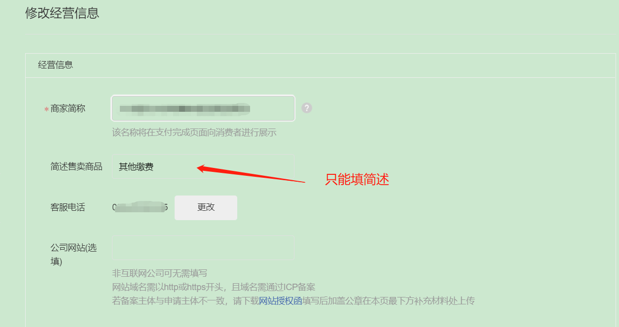 商户号申请成功后不支持修改经营类目,如有需要使用其他类目需重新申请
