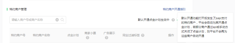 可是新增的商户,并不会默认开通点金计划、商家小票、广告等功能。求解!