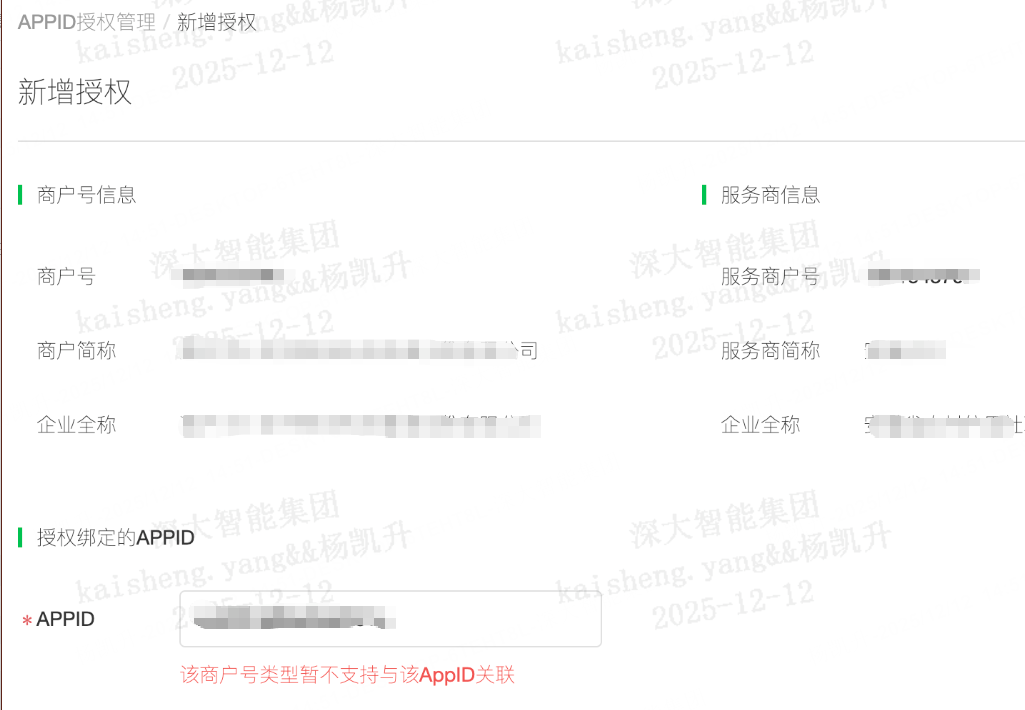 外接银行侧,出现报错该商户号类型暂不支持与该AppID关联,出现报错?