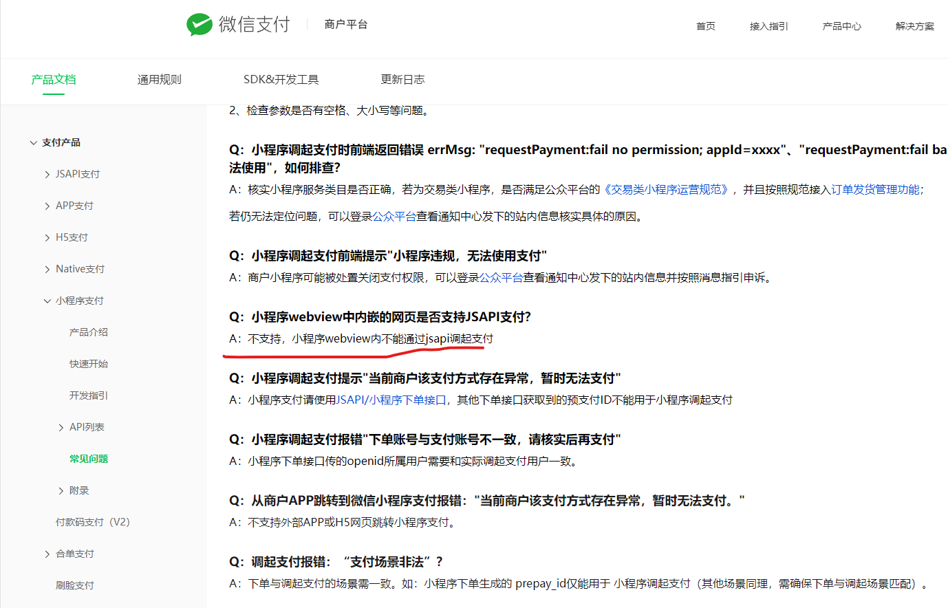 这有啥坑的,文档里有写的呀。小程序只能用小程序支付