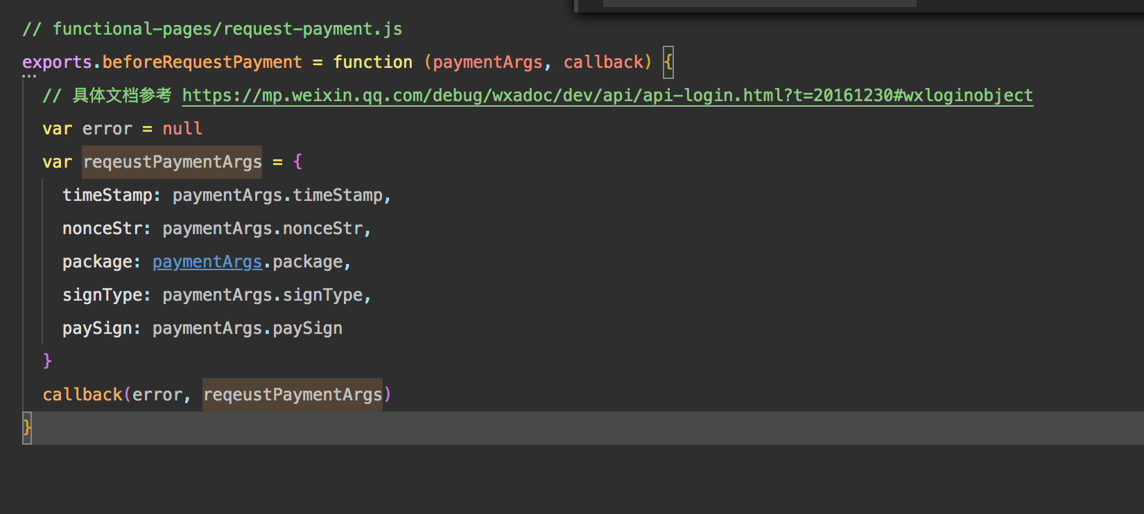 插件所有者小程序的根目录下的 functional-pages/request-payment.js 文件代码如下: