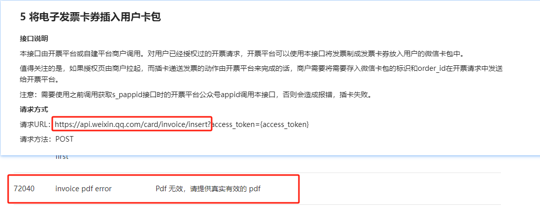 报错信息: {"errcode":72040,"errmsg":"invoice pdf error hint: [MO0693er74]"}