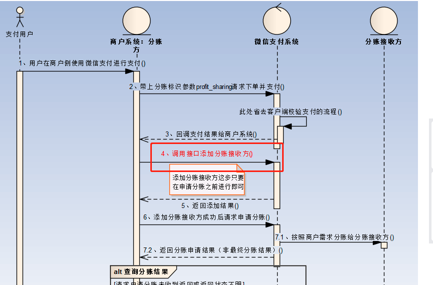 图中为官方服务商分润流程,对于添加分润接收方这一步骤,是否是必须的?我看后面发起分账请求时,又再一次添加了分账接收方的信息。这个不是重复了吗?这个添加分润接收方是生效周期是多久?服务商作为自己特约商户的分润接收方,还需要添加两者之间的分润关系吗或者说,服务商和自己的特约商户可以直接分润,不同再添加关系?