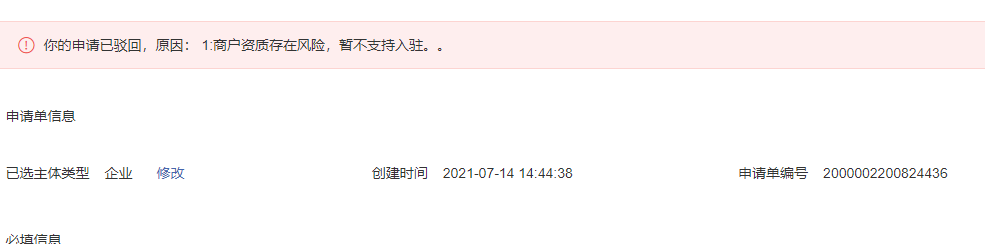 近期我司风控排查,发现商户提交了多次入驻申请单,触发风险系统拦截 导致的