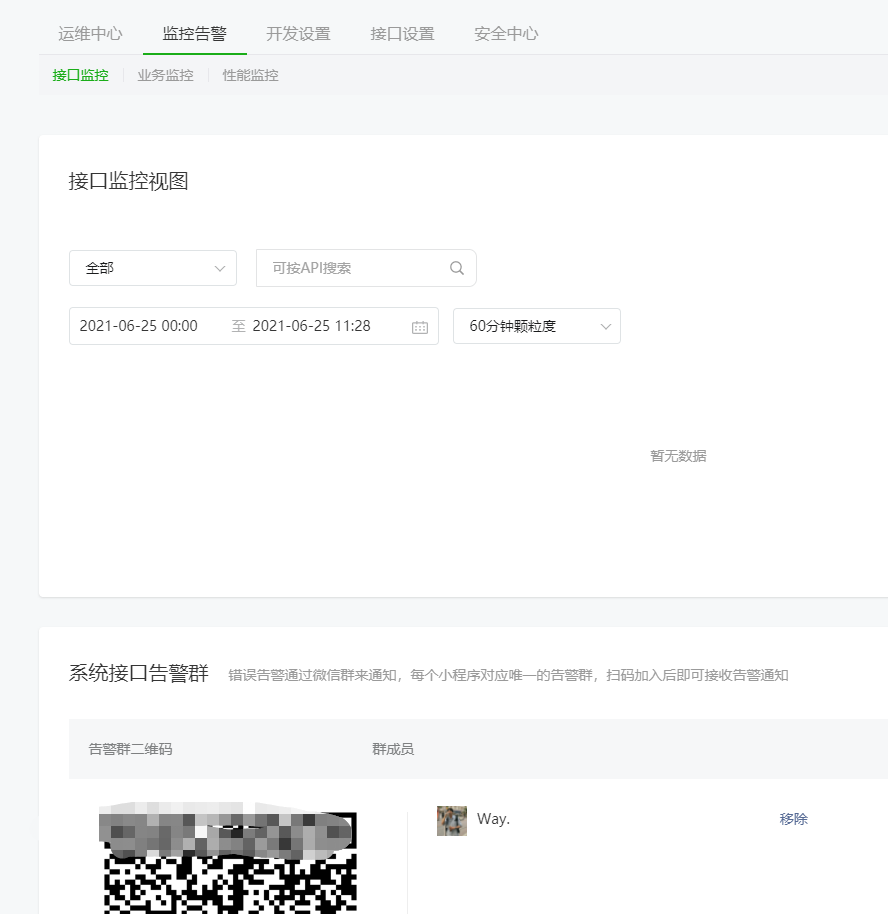 现在版本的微信商户平台不知道为什么在数据中心找不到告警群关注了。