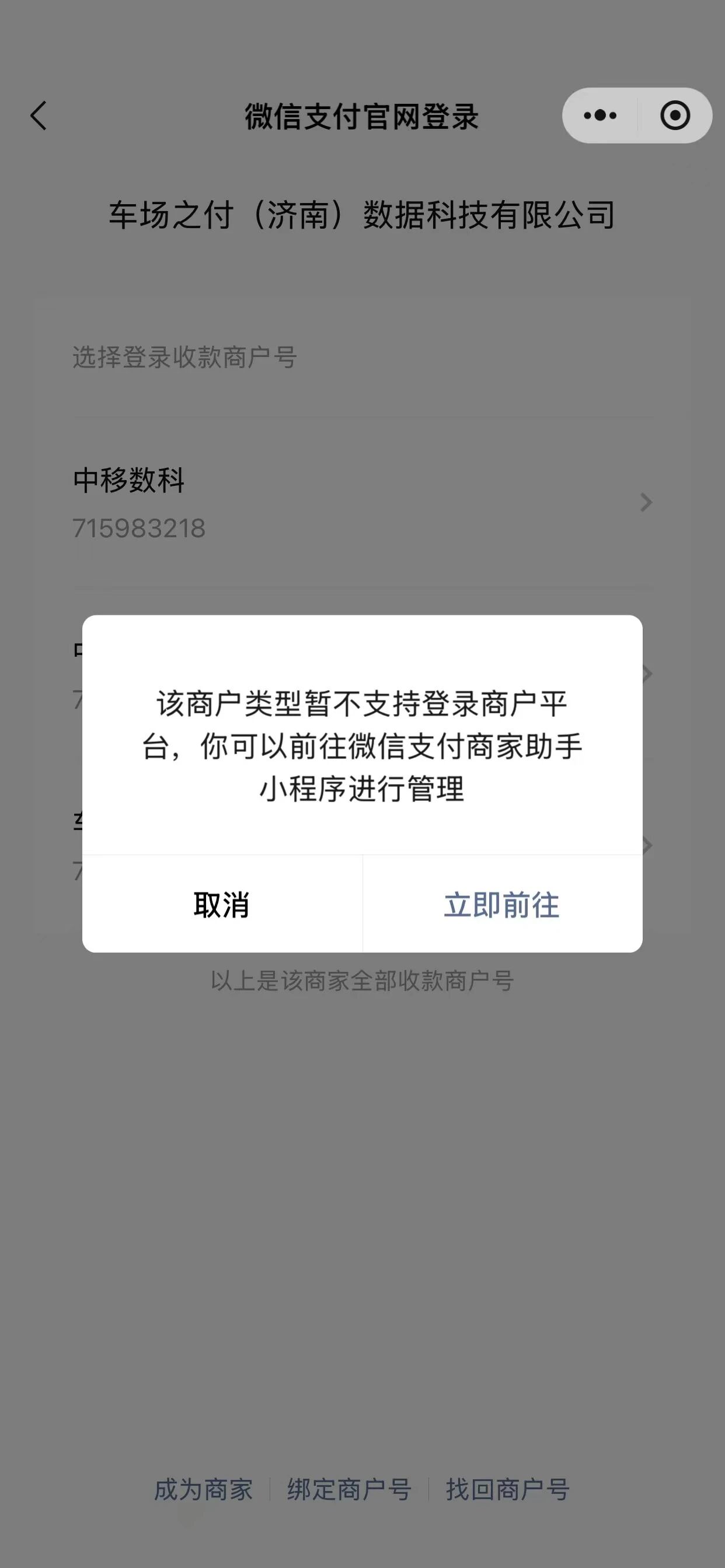 不能登录的就是你说的这类商户,只能通过小程序操作