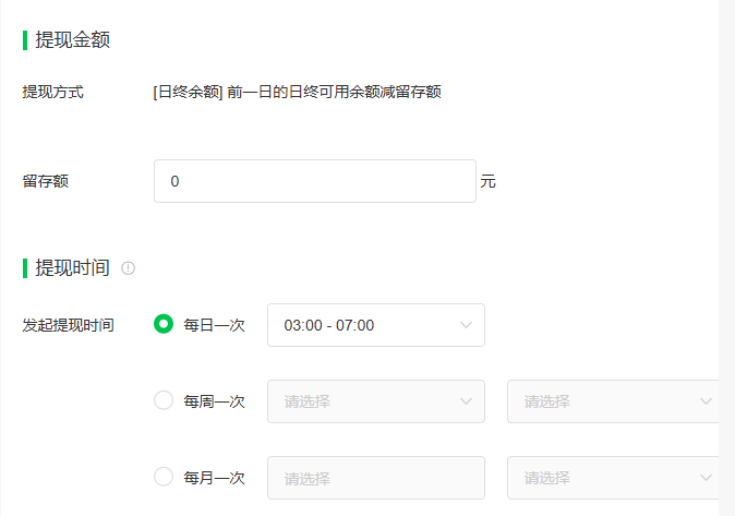 1号支付成功的订单,商户设置的是自动提现,那提现时间是几点,到账时间是几点?
