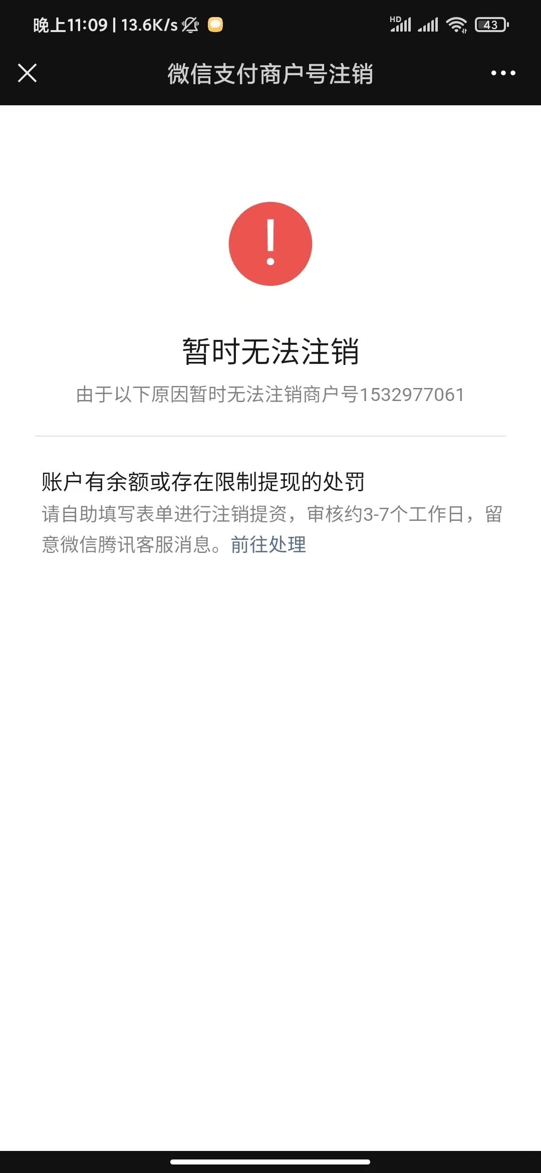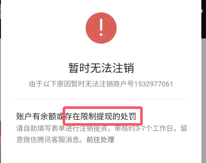 需要注销微信支付商户号,现在无法注销,提示的是账户有余额或存在限制提现处罚。