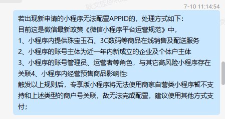 触发了高风险预警,暂时无法接入微信支付。试试通过微信支付客服电话申诉下:95017