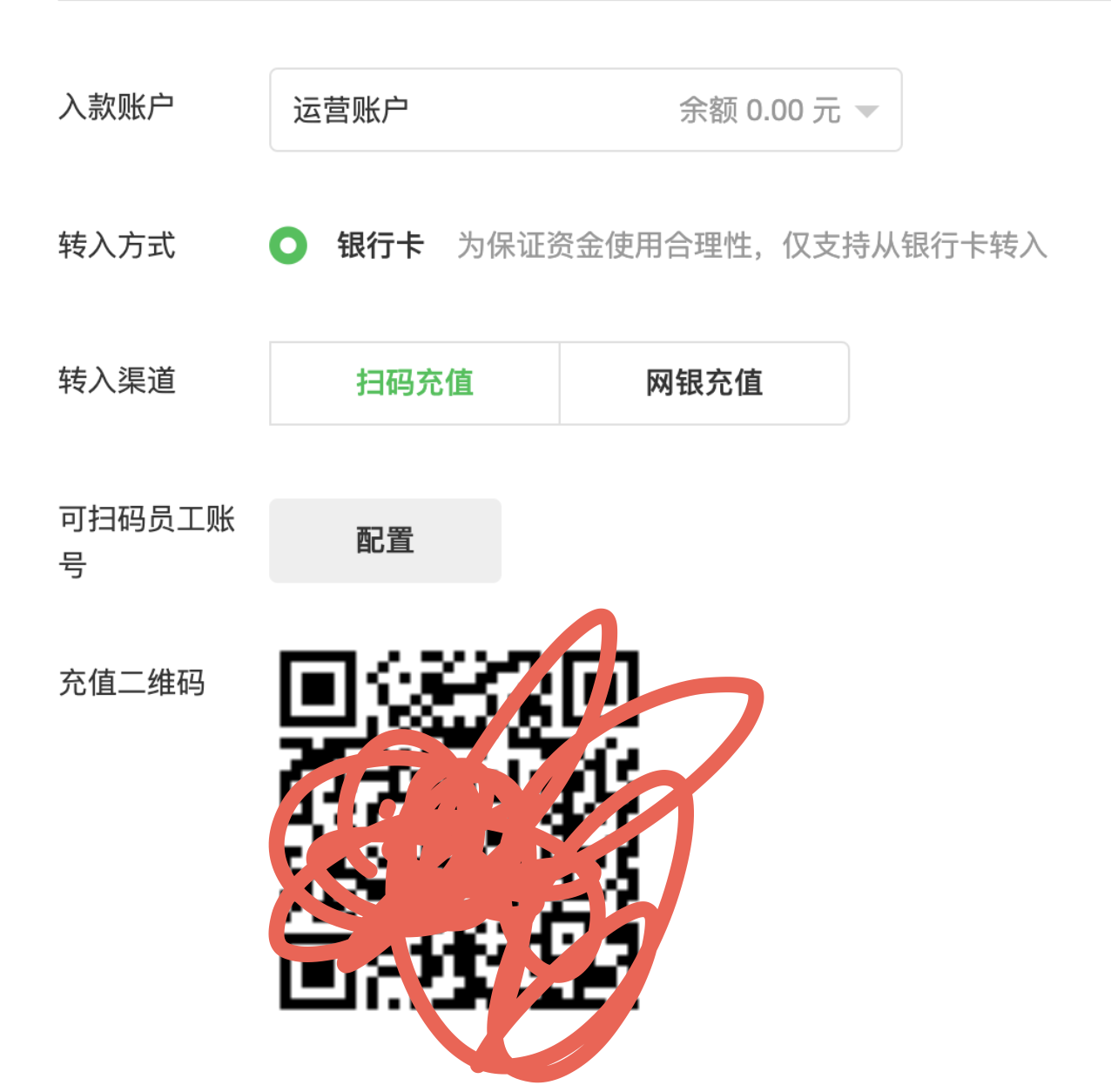 你操作错误,扫码充值的时候你要在页面选择需要充值的账户再进行支付