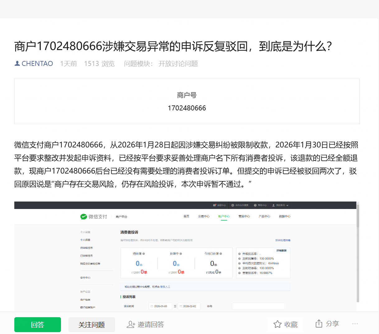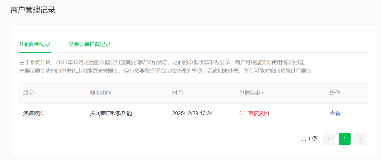 微信支付商户1508549681,从2025年12月29日被提示涉嫌欺诈并被关闭了商户收款功能,查询了一下消费者投诉信息,并没有查到任何投诉记录。查了公司关联的其他商户号,有一个商户号曾经有过投诉(2025年5月份出现的投诉),早已妥善解决。