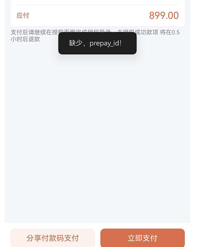 小程序后台不显示不影响调起支付,你的报错是因为你下单请求失败了,需要看对应失败原因