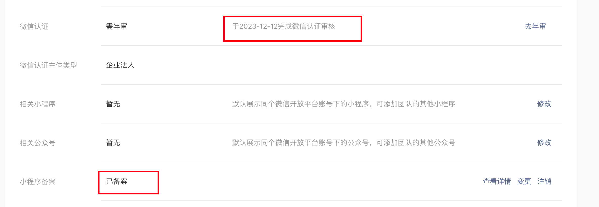 无违规记录、商户号正常、小程序已年审、小程序已备案、微信支付已授权