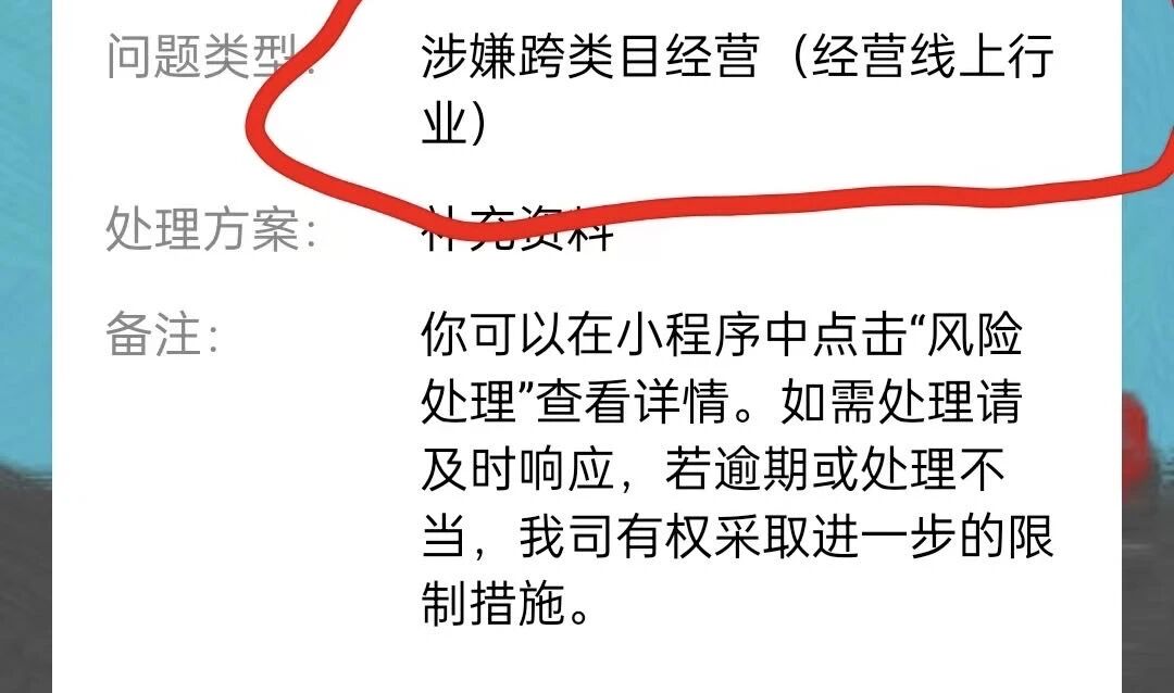 小程序商城售卖酒水饮料,给线下超市和饭店配送。商户号提醒涉嫌跨类目经营,是什么原因,如何解决啊
