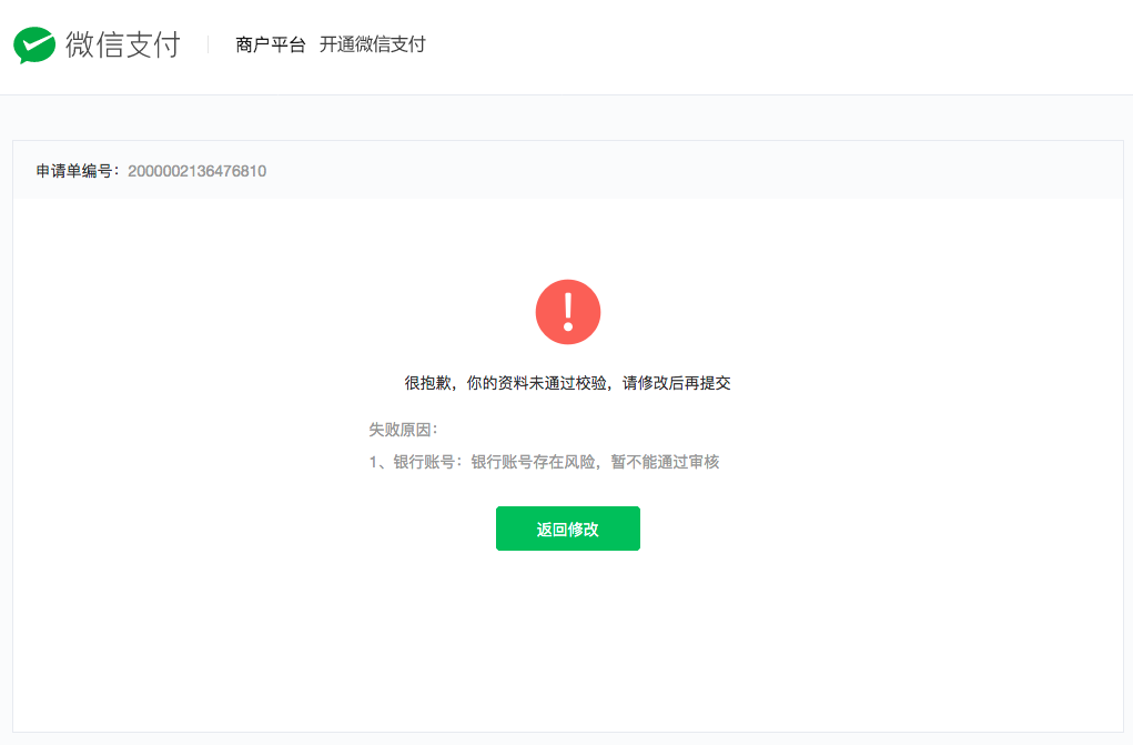 1、银行账号:银行账号存在风险,暂不能通过审核