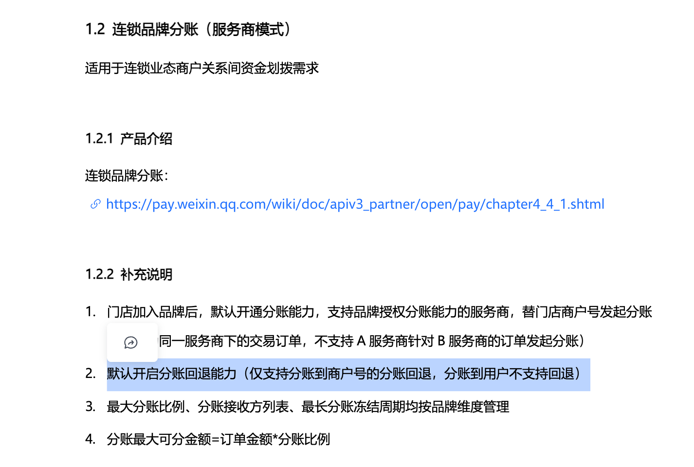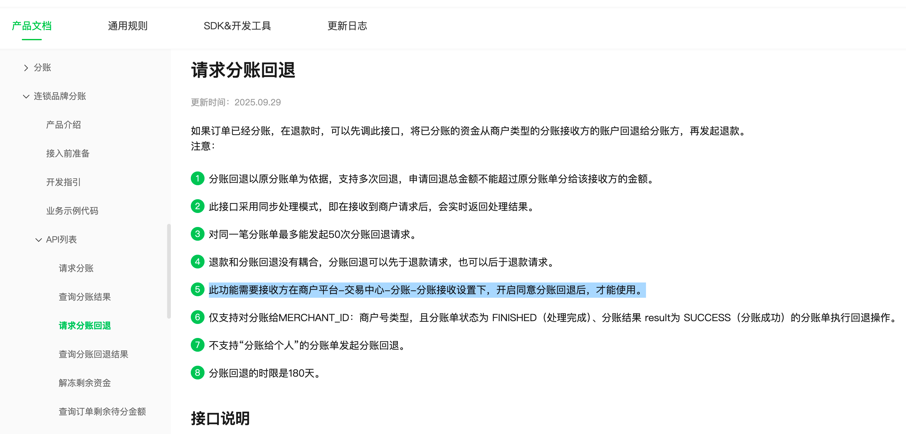 连锁品牌的分账回退功能,看接口文档中提到需要开启分账回退后才可以使用,但是分账资料包:https://docs.qq.com/doc/DR0lVQkRXdHNlbHJx里面提到的是默认开通,具体是什么情况呢?
