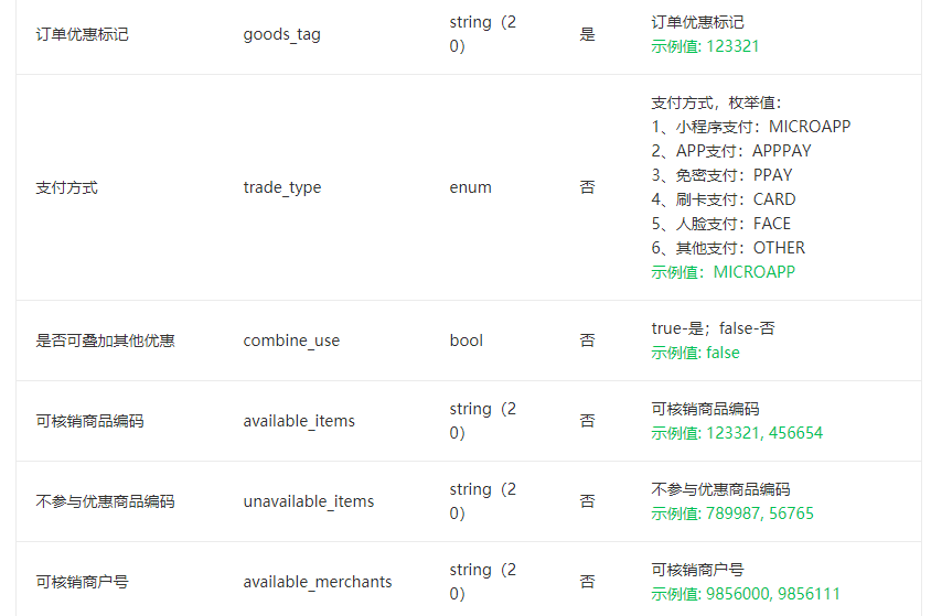 这订单优惠标识,是字符串还是数组?文档是String20 ,json提供的数组。 数组里面的字符串长度限制20?