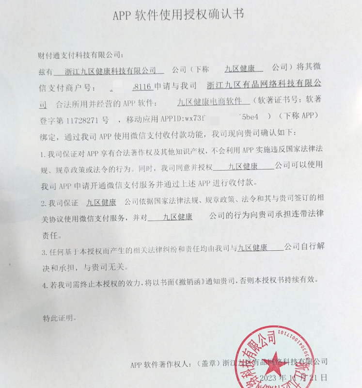 想将付款到【九区健康】商户,在商户端开通微信APP支付业务,