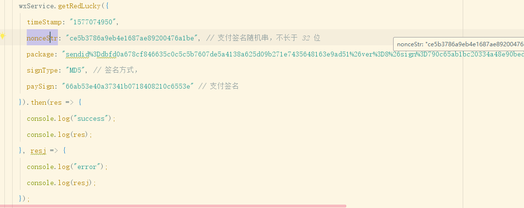 paySign: "66ab53e40a37341b0718408210c6553e" // 支付签名