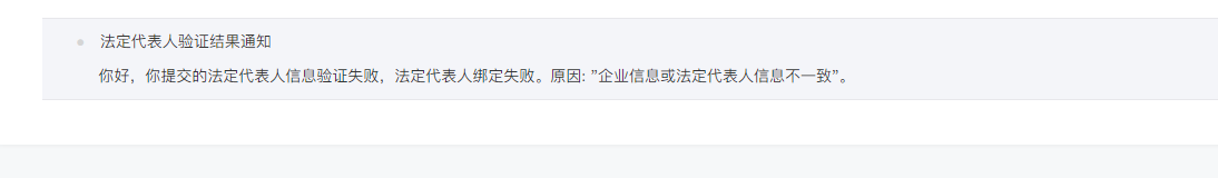 我是前几天才拿到营业知道的,这几天在申请公众号,需要法人扫码扫了后一直说“企业信息与法定代表人不一致”,法定代表人绑定也不行,信息也没错啊