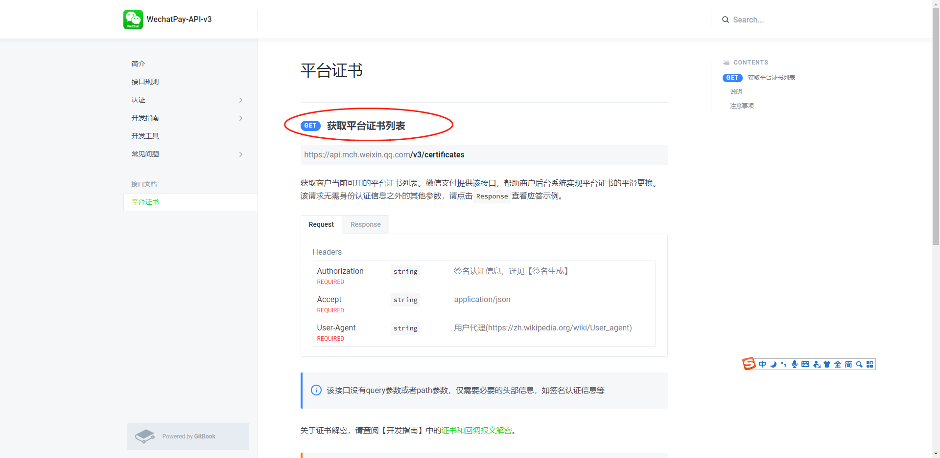 接口: https://api.mch.weixin.qq.com/v3/certificates