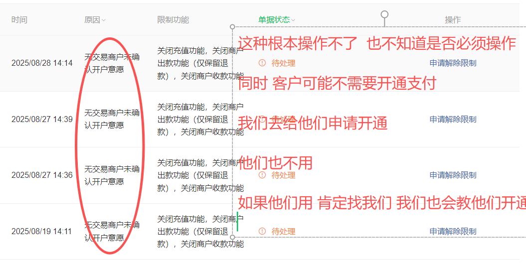 如果客户用小程序 不能支付 肯定找我们 我们都会协助他们让他们申请 或我们申请解除呀!!