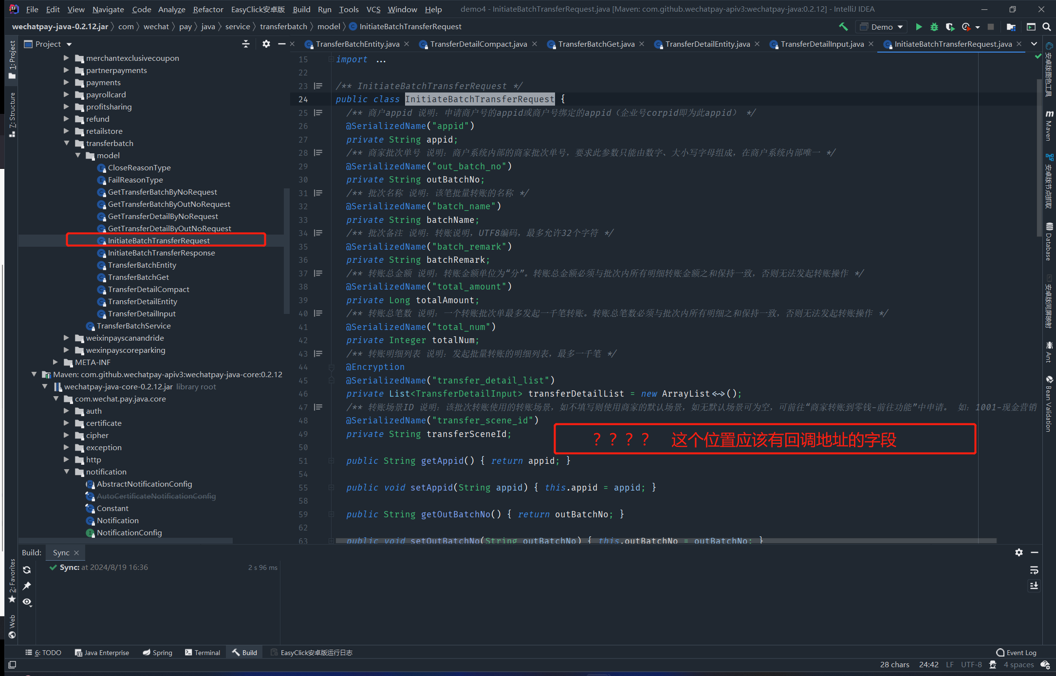 在商家转账到零钱时,版本0.2.12,怎更新也没有回调地址的字段