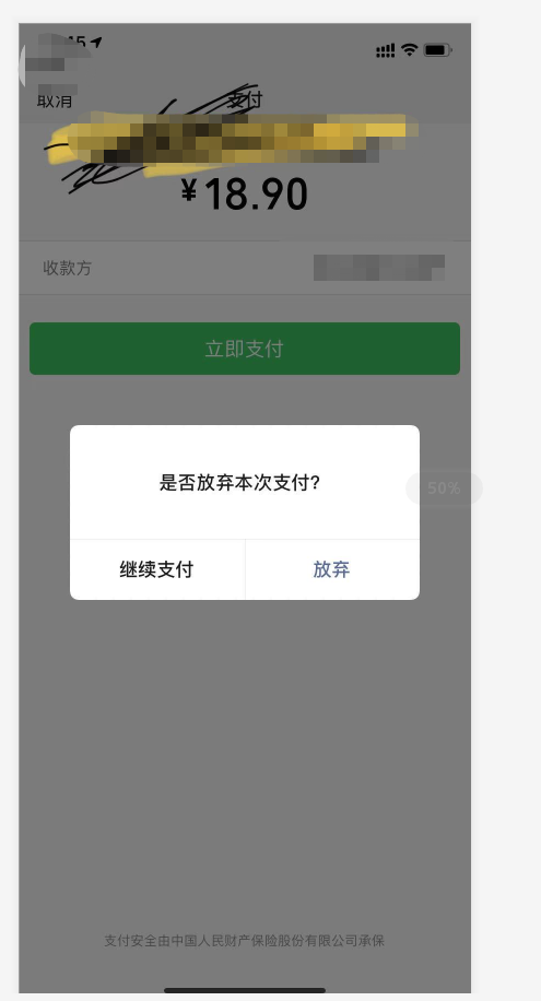 App拉取小程序支付,点击放弃获取不到失败的回调?