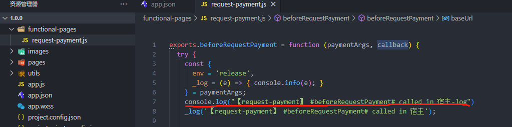 我上传并发布了宿主小程序(wxe2ae77d4cbb8abf0), functional-pages/request-payment在根目录下。我修改了代码但测试时并未走到这个文件里