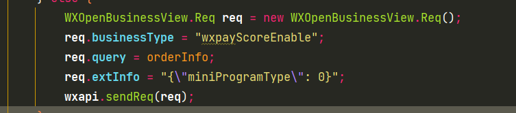 下面代码里 orderInfo 的值为 : sign=A0D30EC8214811936BAD85102C5CF709155041DD6EF478026034B2A8749E122C&nonce_str=1642674784590&package=AAQTnZoAAAABAAAAAAA_S--ou7Lx0QwzYDrpYSAAAABcwQVtru-5k9MmEOZJ_Pv_Nq7Cw56dNKKN5EjZKnt5jUqtJeuNVPp4uLLF3Fsf04N3lEMgEaNknjfCGsgIsXZyLngaCz-RkD4oJJWitGgyALHUwbudj5bCwR-QinUV2Z3RCr2LtRqyta5Hv8Vz8oUR78SEkqey2R3gXly2VWVybBA2fWafV848qg2NT8NhjzQPHd4_eWvAamX0&mch_id=1618935653&sign_type=HMAC-SHA256×tamp=1642674784590&out_order_no=OD220120183304275143372&service_id=00002000000000164181144304231808