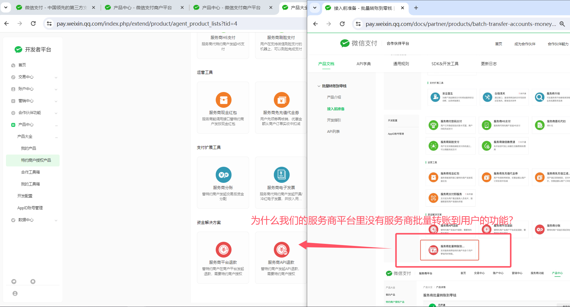 我们是服务商,我们的特约商户有一个需求,没到月底会给老师批量发放陪餐补助;需要用到微信的批量转账到零钱用户的功能,但我们服务商后台=》产品中心=》资金解决方案中没有<批量转账到零钱用户>这款产品,可否帮我们开通一下?