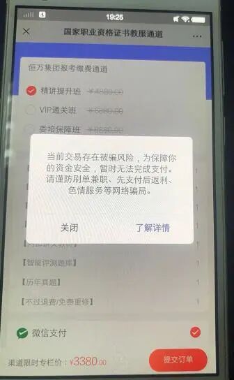 客户在小程序通过微信支付时,收到风险提示(如图)后,放弃购买我们的产品。