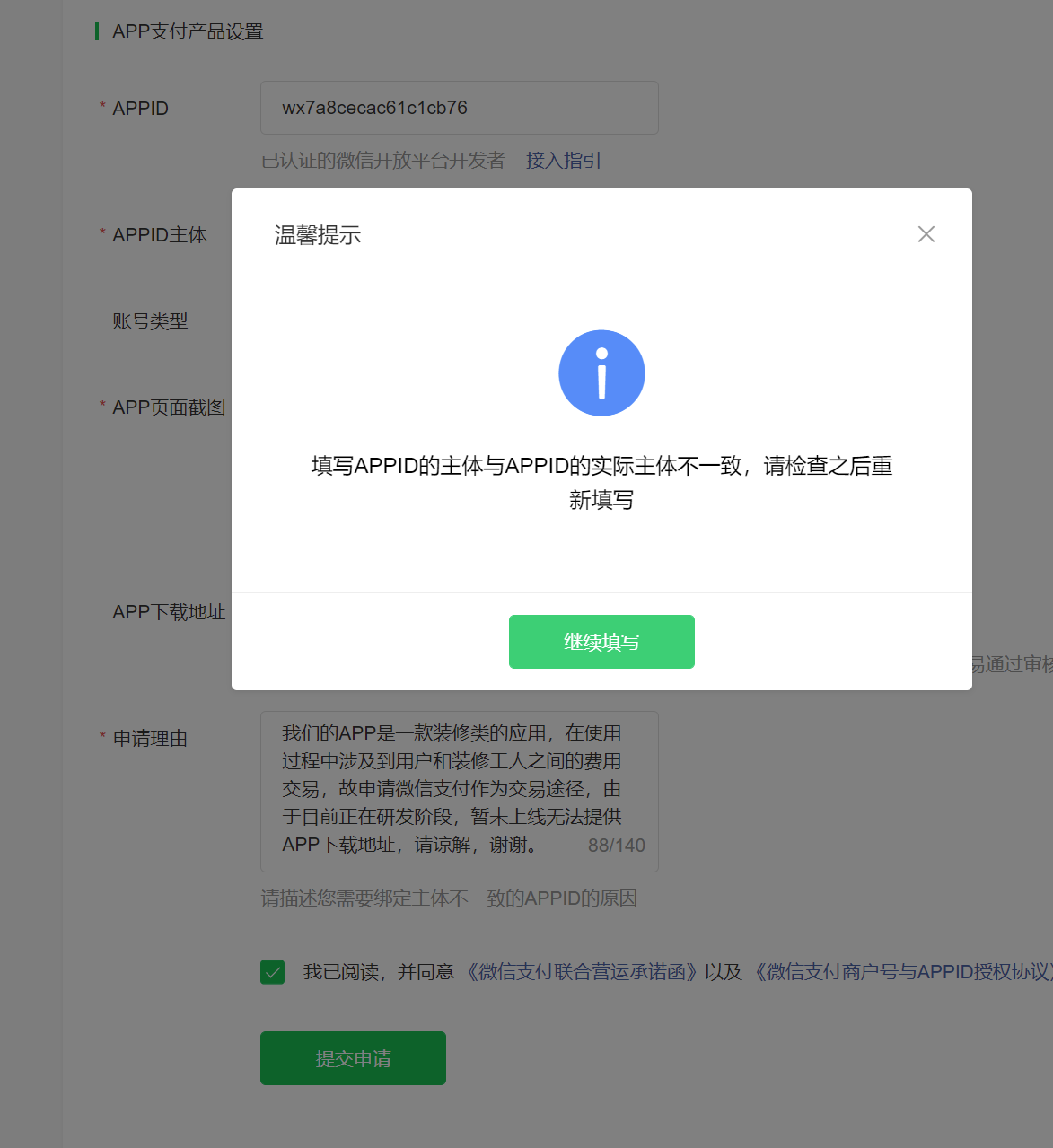 申请成功后可以与不同主体appid绑定,申请时不支持,你可以选择其他方式比如线下门店