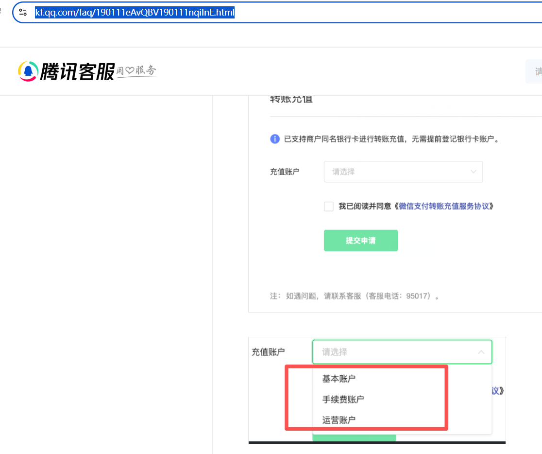 您使用的“转账充值”功能,在开通时或每次充值前,都需要手动选择资金是进入“基本账户”还是“运营账户”。如果选择错误,资金就会去向错误。https://kf.qq.com/faq/190111eAvQBV190111nqiInE.html