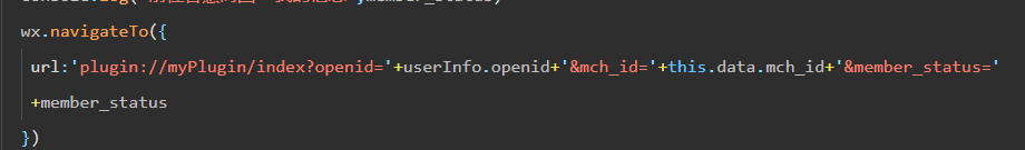 <navigator url="plugin://myPlugin/index?openid=OPENID&mch_id=MCHCODE&member_status=MEMBERSTATUS"></navigator> 你就这么写的吗?