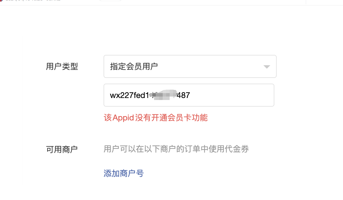 创建全场立减指定会员用户、输入小程序appID提示该ID没有开通会员功能?