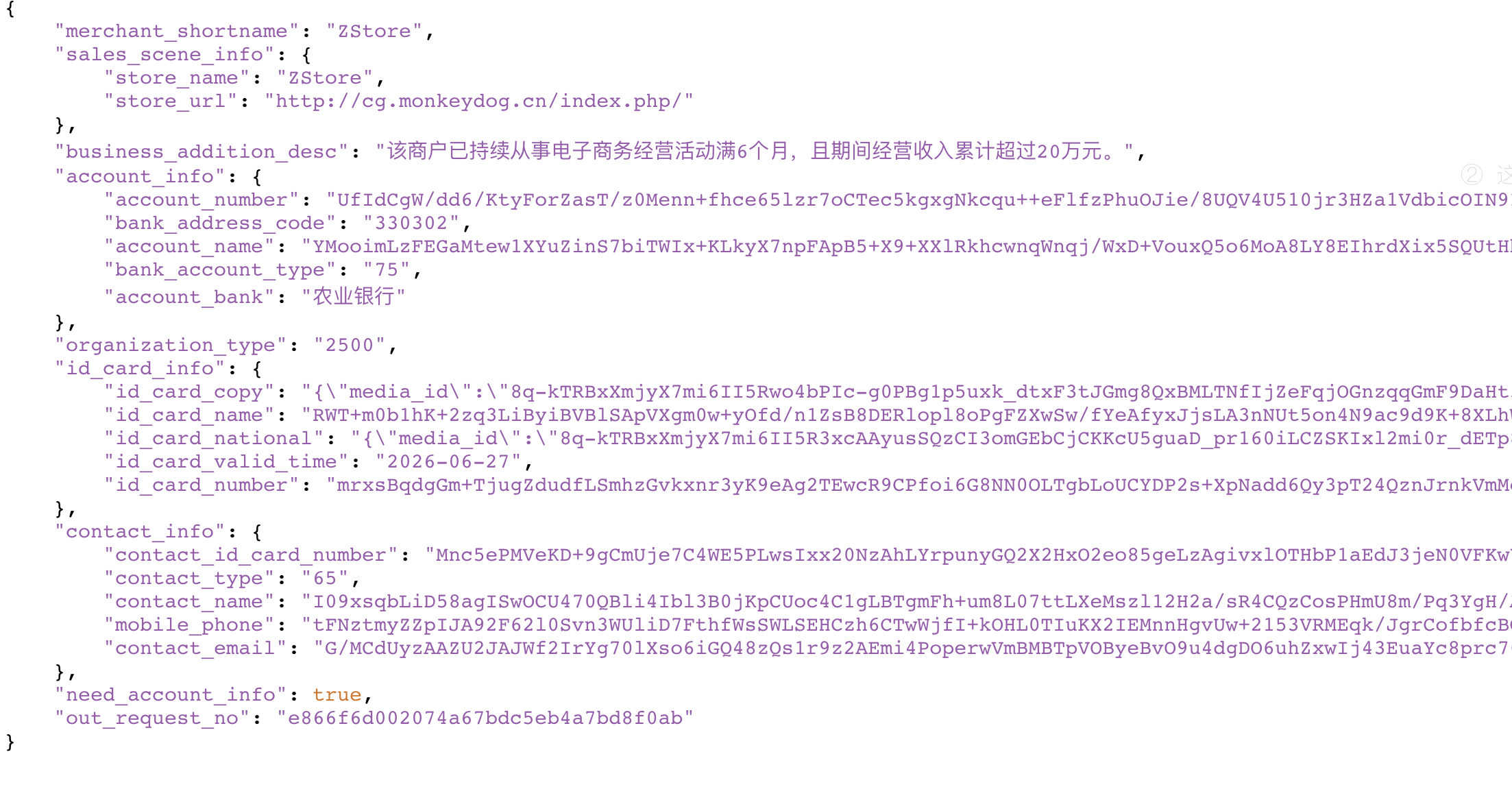 "id_card_copy": "{\"media_id\":\"8q-kTRBxXmjyX7mi6II5Rwo4bPIc-g0PBg1p5uxk_dtxF3tJGmg8QxBMLTNfIjZeFqjOGnzqqGmF9DaHt5XnIcG8LS6InXy4vuJ1KeCWKH4\"}",