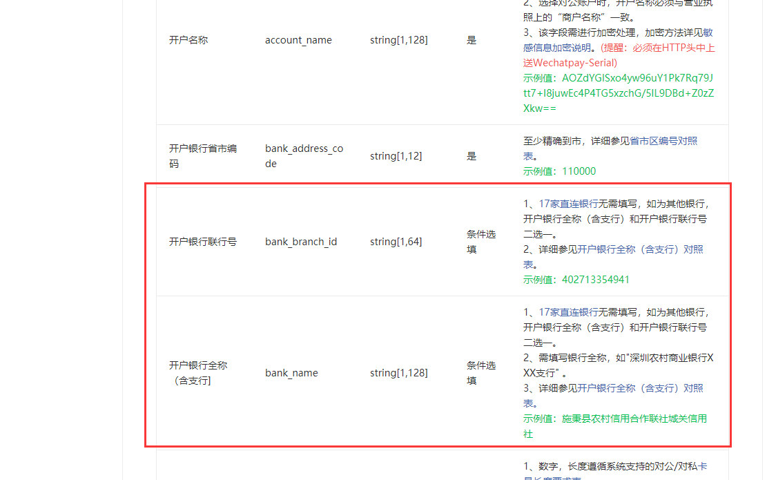 按照文档account_bank的值输入为农业银行,返回开户银行取值有误,不在微信支付提供的银行对照表中,请检查后再试。
