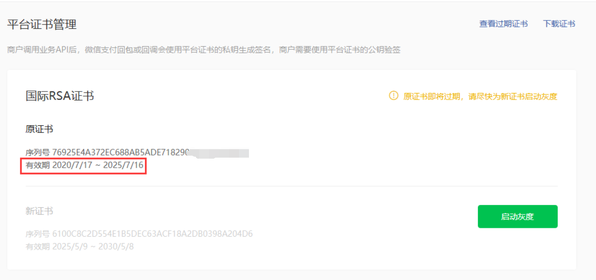 那我们就属于单证书更换,需要下载新证书,然后在本地更换嘛,我在这个页面,没看到新证书的下载地址呢,只有一个“下载证书”入口,这个入口应该是老证书吧,请问新证书的下载地址在哪儿呢