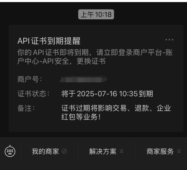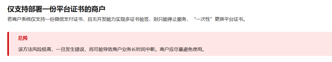 我们app提示,微信API证书还有1个月过期了,现在需要更换,如图,但是看了引导的文档,有2种更换方式,一种是,另一种是,我们无法确认是哪一种,需要微信技术帮忙提供信息来确认,谢谢