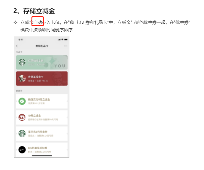 这边文档写的是自动存入卡包,我这边通过接口主动领取立减金,结果未插入卡包。哪位大神能解答下