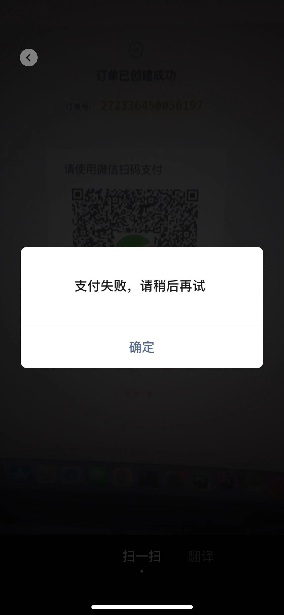用这段代码生成二维码,扫码就直接弹出"支付失败,请稍后再试"