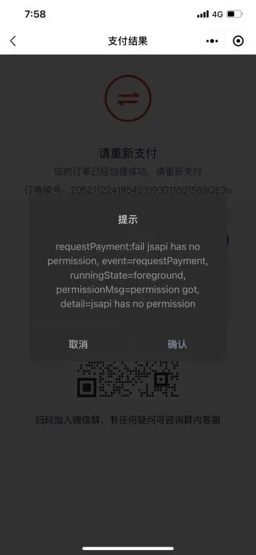 是否调用参数有误?与运营确认过并未提供虚拟产品服务,小程序账号内也未收到被封禁的消息提示