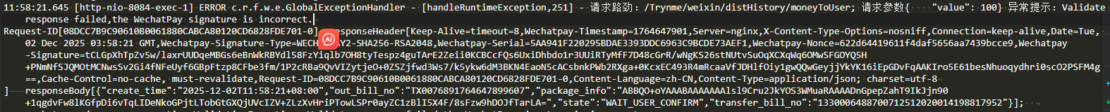 异常提示:Validate response failed,the WechatPay signature is incorrect