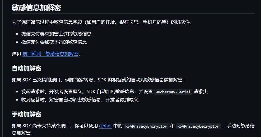 另外,微信支付 APIv3 Java SDK:https://github.com/wechatpay-apiv3/wechatpay-java?tab=readme-ov-file 。不知道提交申请单是否有SDK支持,可以自动做加解密